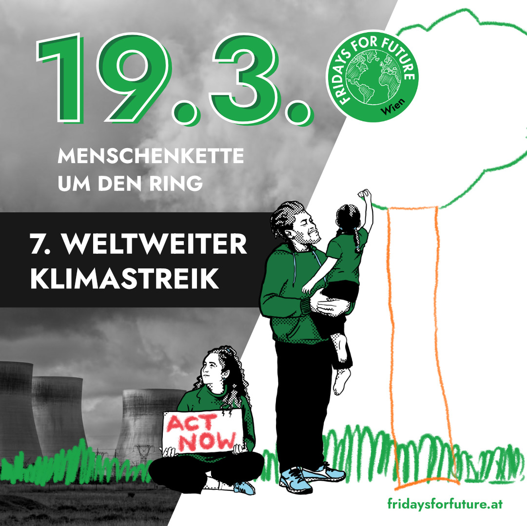In Wien findet der Klimaprotest ab 12 Uhr in Form einer Menschenkette mit 3 m Abstand rund um den Ring statt.